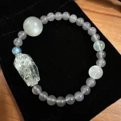 高品質ムーンストーン/ペリステライト の素敵なブレスレットです。透明感を感じられる真っ白な母岩の全珠にブルーやホワイトの美しいシラーが浮き出ており神秘的な印象です。大粒の為、よりシラーの輝きを堪能出来ます。磨きも美しく艶々です。撮影技術不足により、なかなかお伝え仕切れませんが、名前の通り月そのものといっても過言ではない美しさです。大切な方へのプレゼントにもいかがでしょうか?