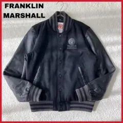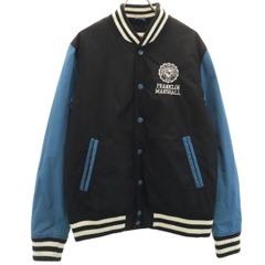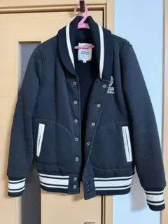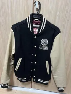 ウールとレザーのスタジャン、刺繍デザインが特徴。