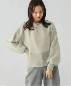 バルーンスリーブデザインのグレーのスウェットトップス。