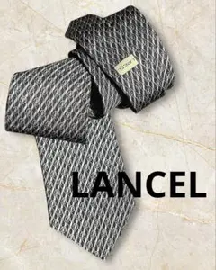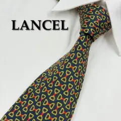 幾何学模様のオレンジ色のLANCELネクタイ。