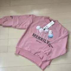 BE CHEERY, MERRYのプリントが特徴のカジュアルな紫色トレーナーと、さくらんぼプリントand袖にダブルラインが入ったトレーナーのセットです!