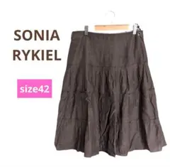 ダークブラウン フレアスカート リボン付き ソニアリキエル ひざ下