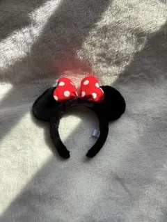 ミニーマウスの耳カチューシャ、柔らかい素材で快適な着用感。
