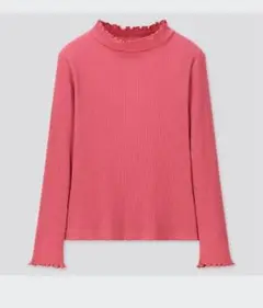 アイボリーのリブ編み長袖カットソー、フリル裾デザインがかわいいです。