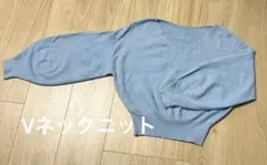 柔らかいライトブルーのVネックニット、長袖デザインで快適な着心地。