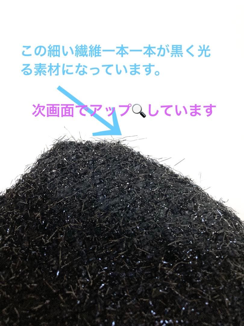 【画像10と12】が色調やキラキラが一番近く表現できていると思いますが、実際はもう少しキラキラしています。スパンコールやラメでキラキラしているのではなく【画像11〜12】のように細くキラキラした艶のある黒い繊維が織り込まれています。長い繊維が1本1本つやつやなので、スパンコールやラメより品よく感じます。