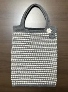 黒とグレーの編み物トートバッグ k055