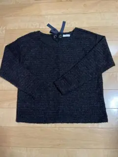 インデックス|ケーブル編み セーター【M】バックリボン グレー ローゲージニット