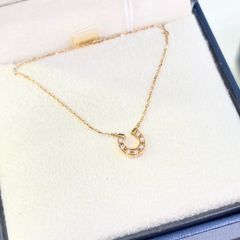 ピンクゴールドとダイヤモンドでホースシュー(馬蹄)を描いたネックレス。