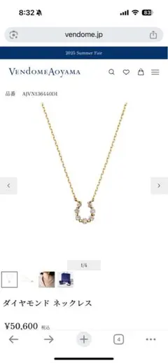 ヴァンドーム青山 ダイヤモンド ネックレス ピンクゴールド ホースシュー 馬蹄