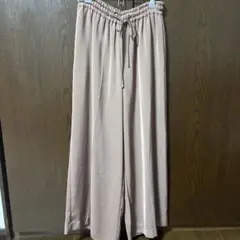 表面のシボ感が特徴な微光沢のビンテージサテンを使用したワイドパンツです。落ち感があるキレイ見えするサテン生地なので、カジュアルなアイテムとも相性が良いです。ウエストはぐるりゴム使用なのでストレスフリーな着心地です。開きの無い総ゴム仕様でも、フロントは開き見せ仕様なのでトップスインでもさまに見えるデザインが細かなポイントです。ジャストウエストで履きやすく、しっかりホールドされつつゆとりのある履き心地◎
