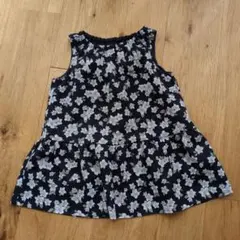 ホワイトとイエローの花柄デザインの半袖ワンピース、サイズ90。