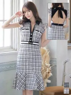 カラー糸が編み込まれた高級感のあるツイードセットアップドレス