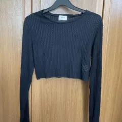 ヘンリーネックデザインのブラック長袖クロップドトップス。