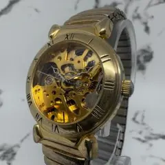 両面スケルトン 小樽浪漫 腕時計 機械式 ゴールド色 金色 クラシック
