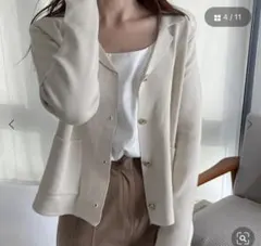 フリルをあしらったフェミニンなカーディガンです。