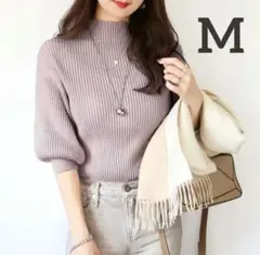 定価1.5万 ル マレ ボリュームスリーブ リブニット リブ編みVネックセーター