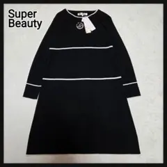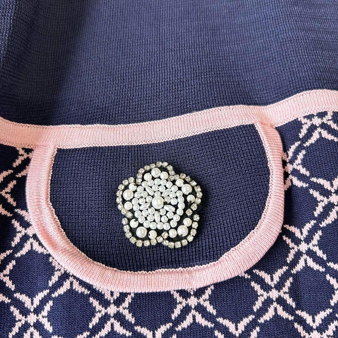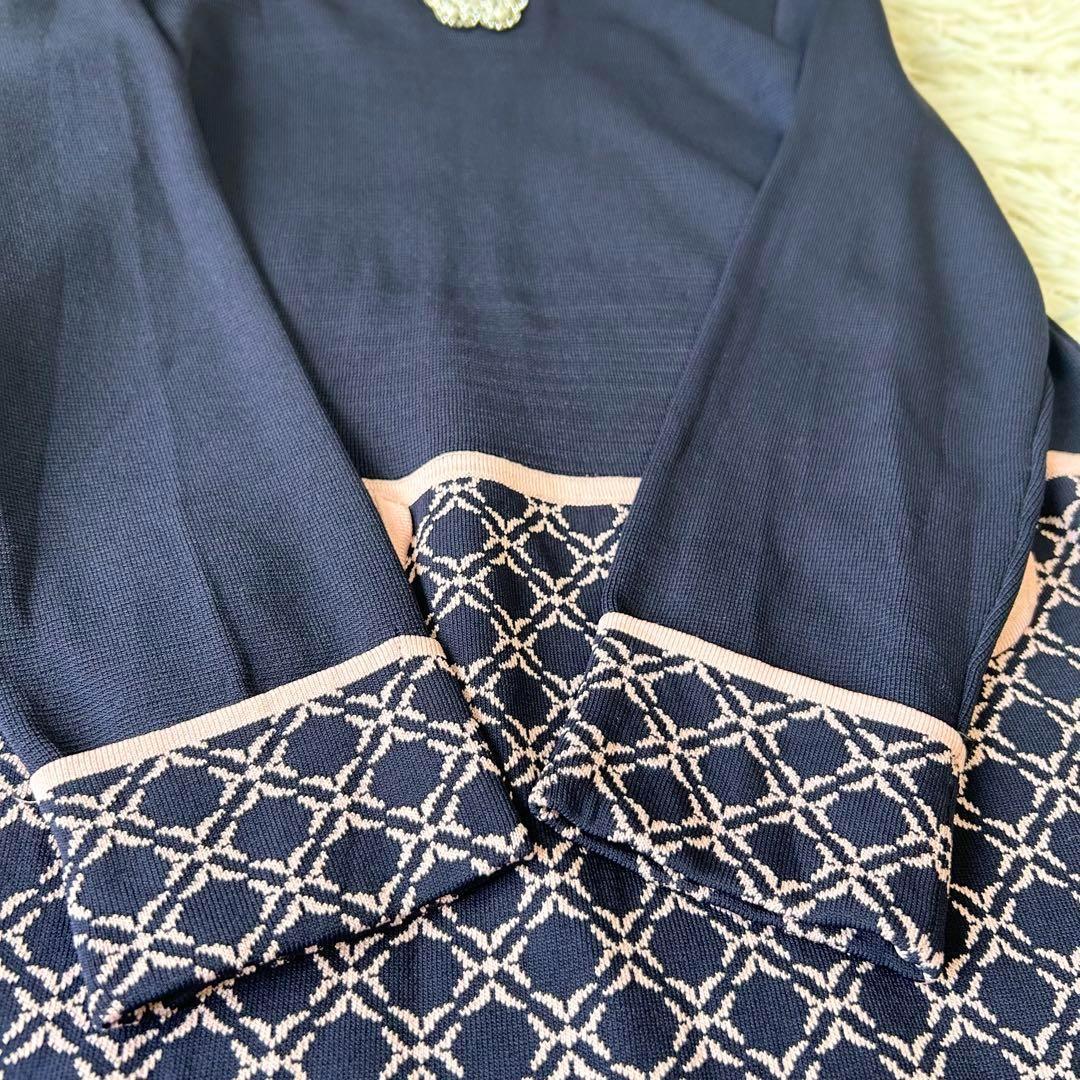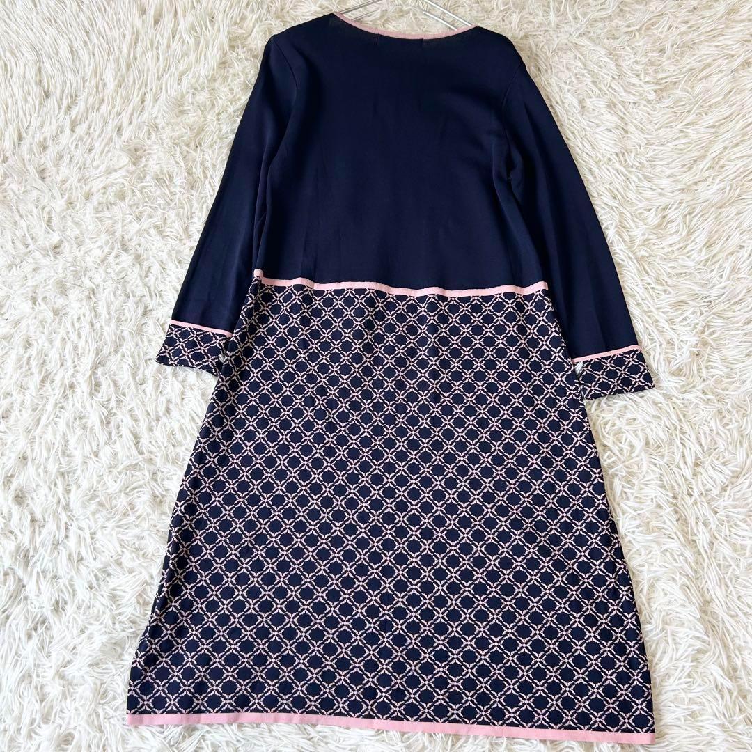 スーパービューティー Super Beauty Ohra Beau ジャガード編み ビジュー 切り替えワンピース 紺 ピンク