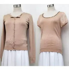 Apuweiser-richeの半袖ニットとニットカーディガンのアンサンブルです。