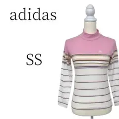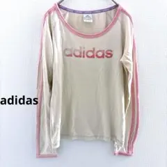 adidas 長袖Tシャツ ベージュ×ブラウン Lピンクロゴ スポーティ