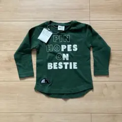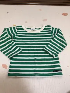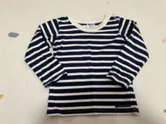 ネイビーとホワイトのストライプデザイン、ポケット付きの長袖カットソー。