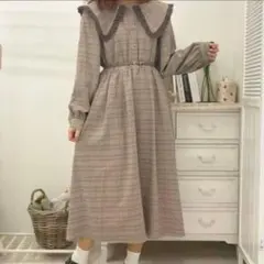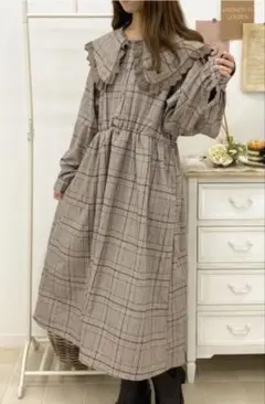 2枚重ねになったフリル襟が可愛らしいワンピース。