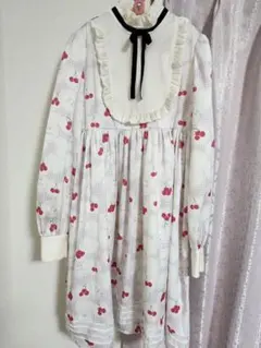 モノトーンのさくらんぼ柄とお襟元のデザイン、ふんわりとしたラインがとても可愛いです