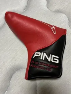 PINGのパター用ヘッドカバー、黒と白の配色に赤いラインが特徴。