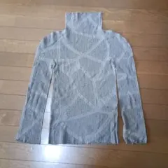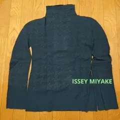 【イッセイミヤケ】ニット 美品 モックネック ベロア生地 L グリーン