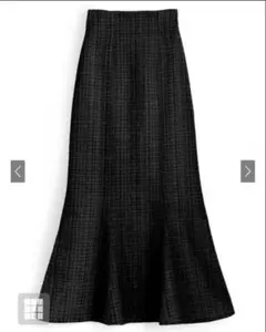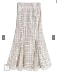 グレーのチェック柄ロングスカート、ゴムウエストで快適な着心地。
