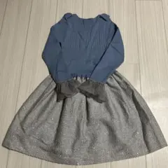 TOCCAの120サイズ、フラワープリントのフリルスカート付き七分袖ワンピース。