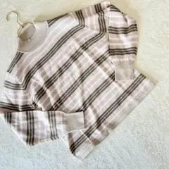 EGLANTINE ニット セーター 40 グレー系 ボーダー柄 ストール付