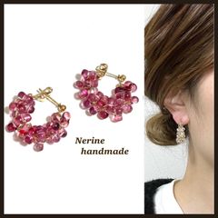 14kgf ハートのインカローズと水晶のピアス ハンドメイド 両耳用