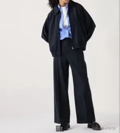 昨年購入したユニクロのブラッシュドジャージーワイドパンツ、ネイビーのMサイズです。