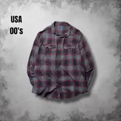 USA オンブレチェック 長袖ネルシャツ シャドーチェック ライトネル