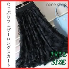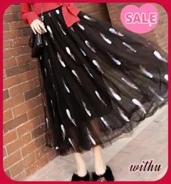 【新品】おしゃれ フェザースカート 黒 フリーサイズ ウエストゴム b