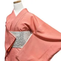 シンプルなデザインのピンクの小紋、オレンジの袖が特徴。