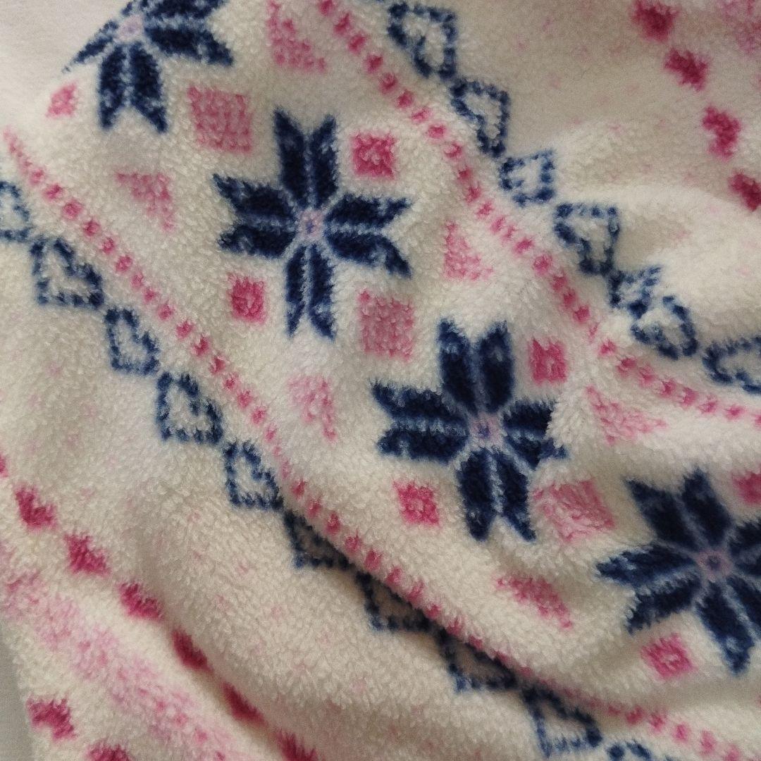 ホワイトを基調にピンクとブルーの雪の結晶のような柄が特徴で、冬のコーディネートにぴったりです。