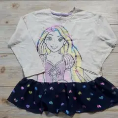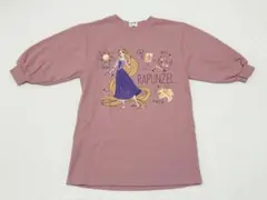 ラプンツェルのプリントが施された紫の七分袖ワンピース。