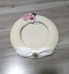 青木美沙子☆グレー ベレー帽 パール付きリボン 57.5cm