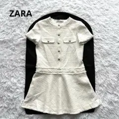 ZARA ブラック 半袖 ツイード ミニワンピース
