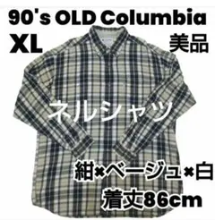 コロンビア トップス チェック柄 紺白 長袖シャツ Lサイズ