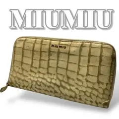 ミュウミュウ MIUMIU 長財布 クロコ 型押し グレー グレージュ