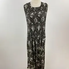 花柄 シャーリング バックボタン ノースリーブ ロング ワンピースY625