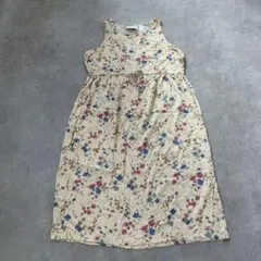花柄 フラワープリント シャーリング バックボタン ノースリーブ ロング ワンピース ドレス