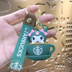スターバックスのカップに乗った可愛いキャラクターのキーホルダー。