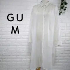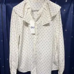 GUのホワイト長袖シャツ、ポリエステル100%で軽やかな着心地。