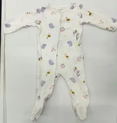 フリース素材のストライプ柄ロンパース、フード付きで暖かいです!