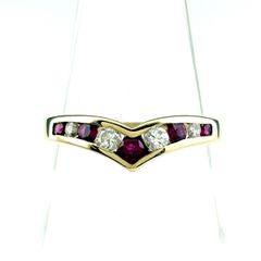 シンプルなルビーリングに、ダイヤモンドが2石あしらわれています。