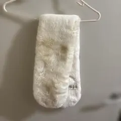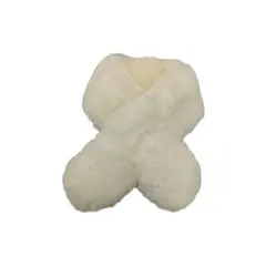 柔らかいファー素材のオフホワイトマフラー、かわいいポンポン付きです。